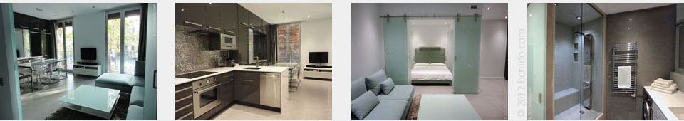 Entirely renovated designer apartment for rent centrally located on Rambla del Raval, in historic El Raval. Modern, minimalistic and luxurious. Furnished with top quality amenities, soundproofed exterior doors, central AC. 2 Double Bedrooms, 1 Bathroom.